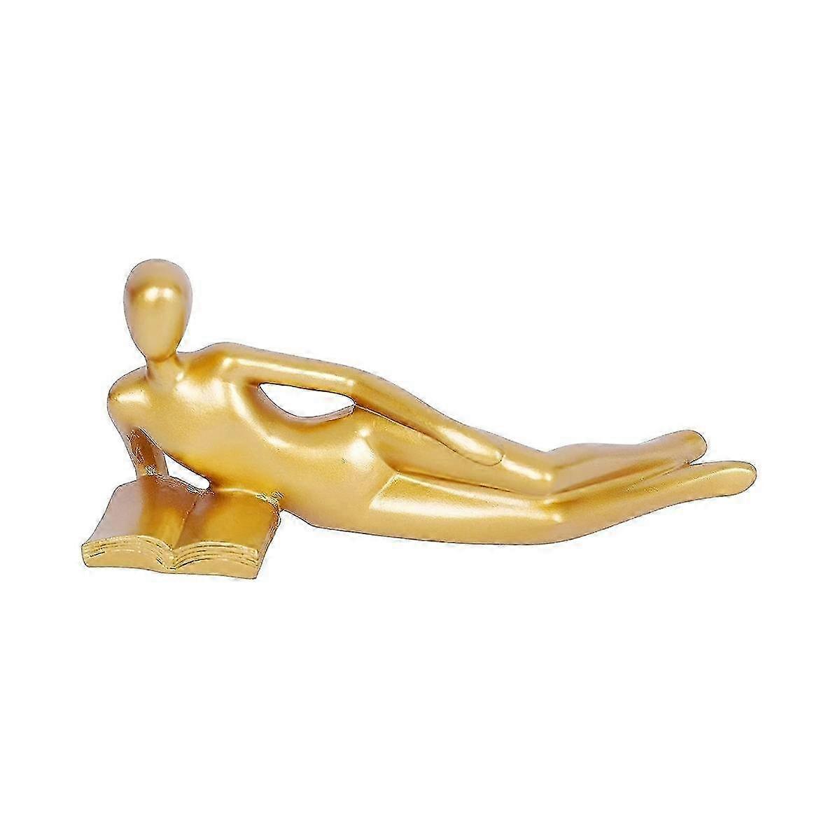 Gold Decor Reading Statue: Home Decorations with Gold Accents for Living Room. Resin Abstract Design