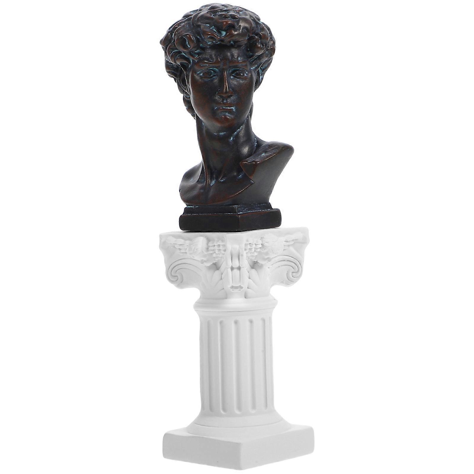 Resin David Bust Statue with Roman Column, Vintage Decorative Figurine for Home, Office, and Dining Room Table Decor, Bronze Finish