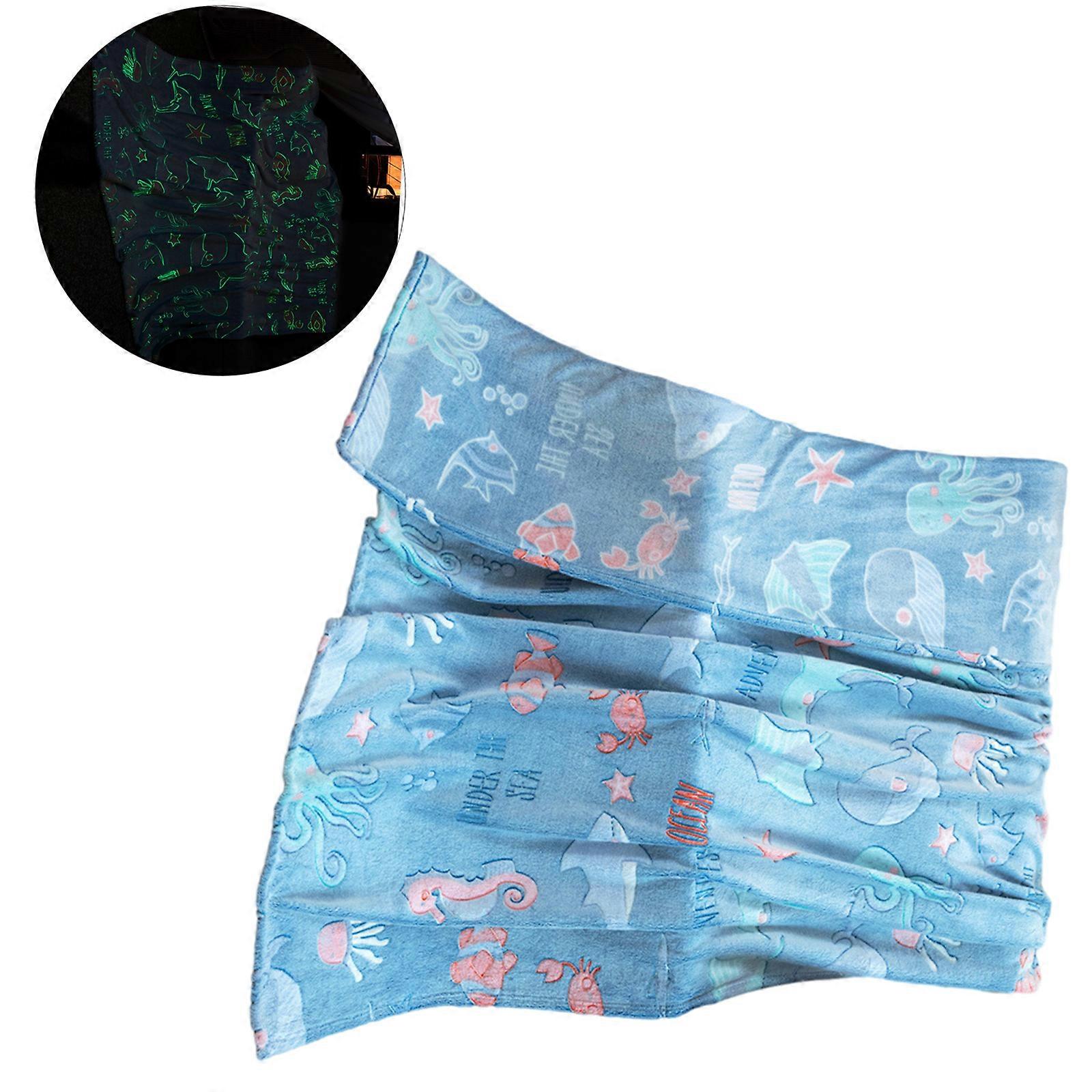 Glow in Dark Blanket for Girls Boys Soft Flannel Throw Blanket for Kids Underwater World Luminous Blanket Bedroom Office Blue