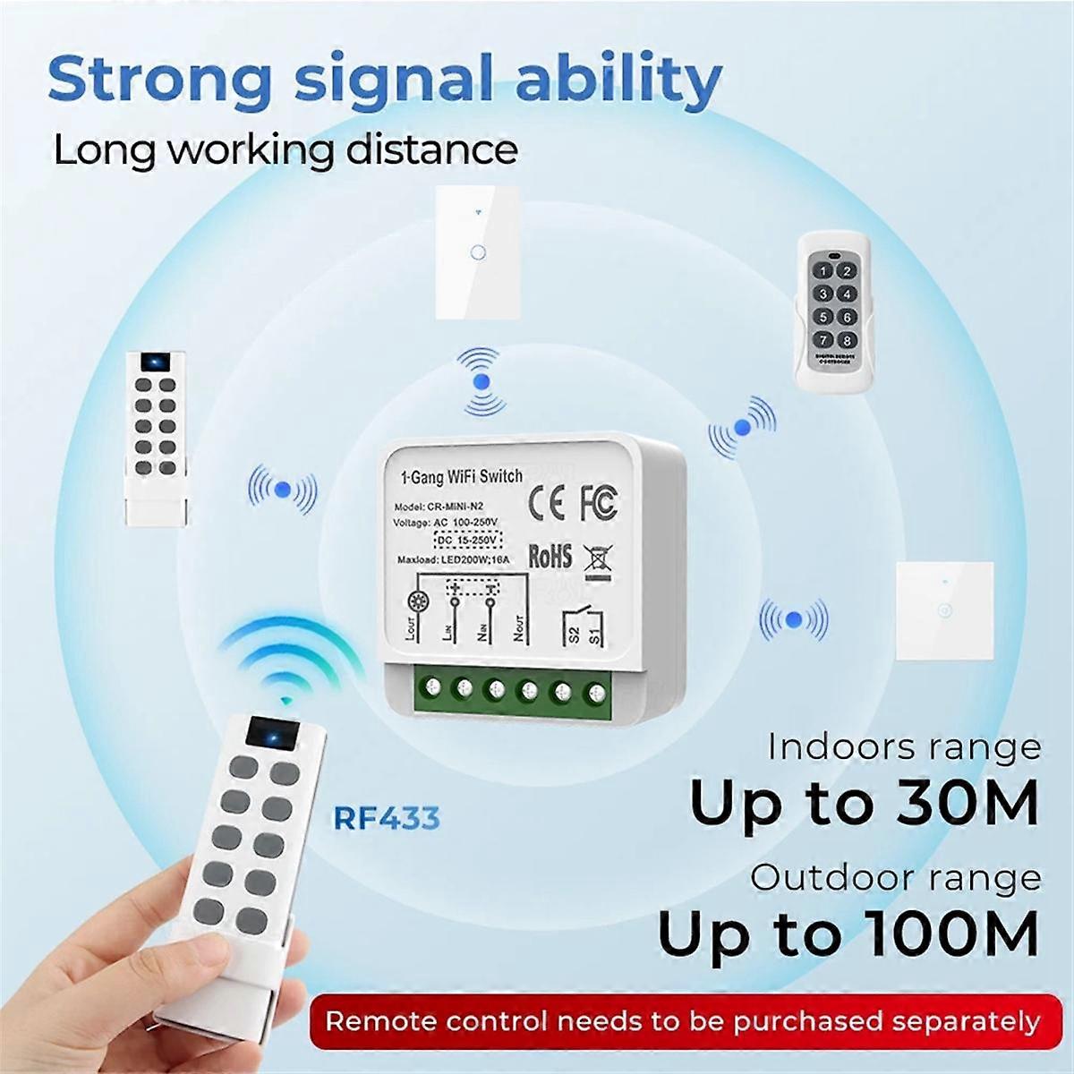 Tuya WiFi RF433 Smart Switch Module with Remote Control Home Automation DIY MINI Breaker Relay for Alexa Smart