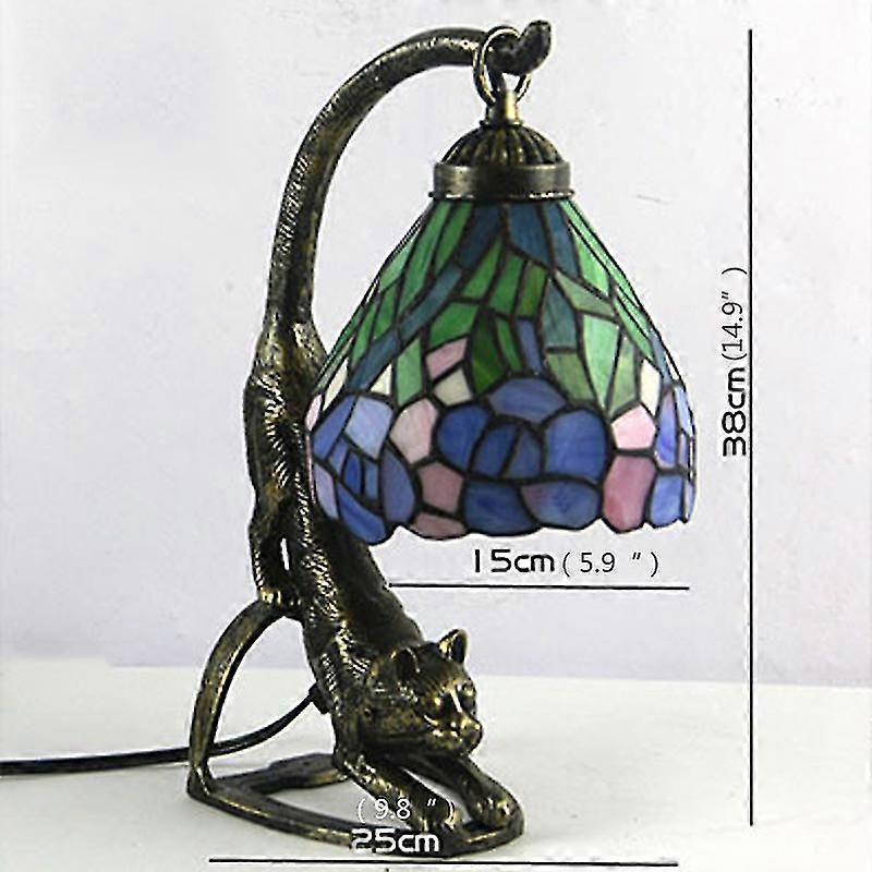 Tiffany Glass Table Lamp Led Vintage Creative Novelty Cat Desk Light Decor For Home Living Room Bedroom Bedside