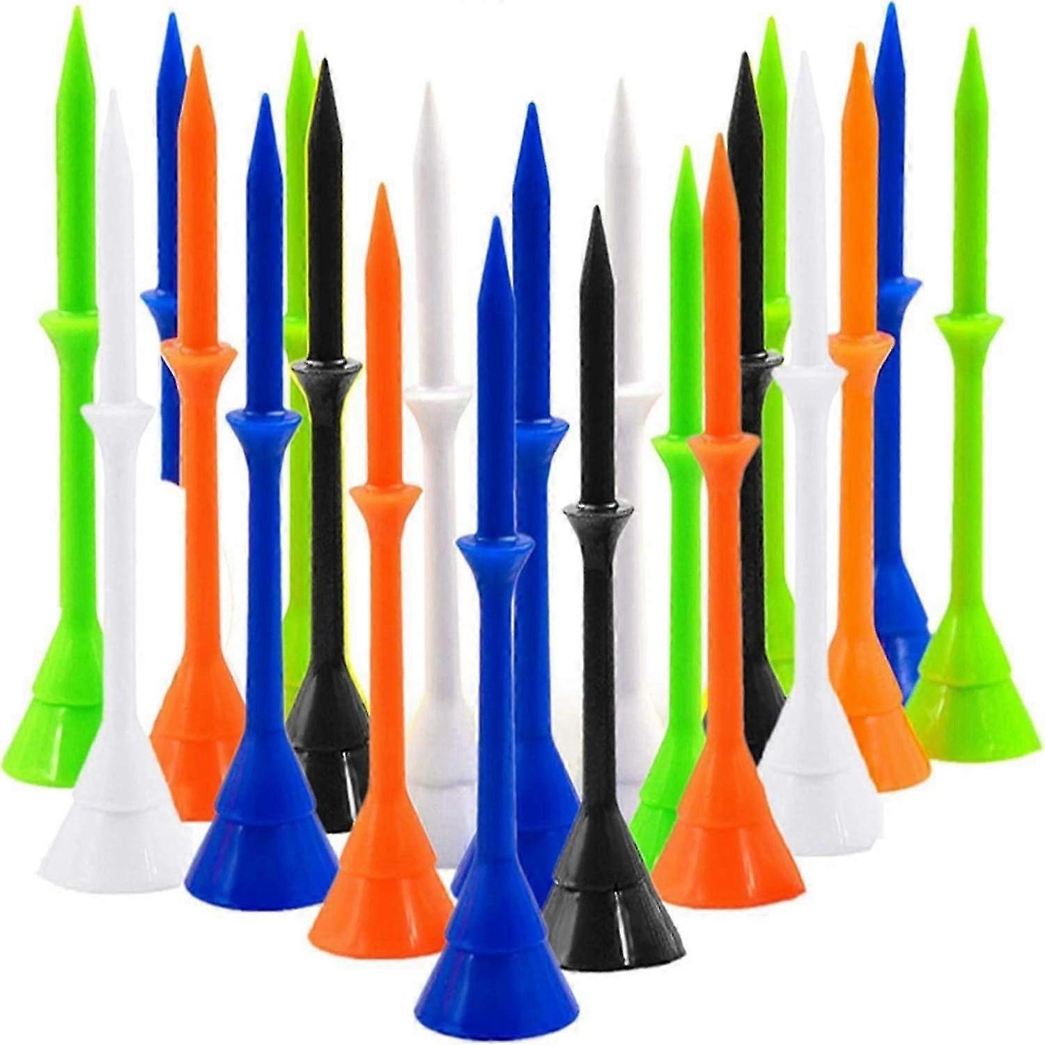 MADE OF HIGH QUALITY UNBREAKABLE MATERIAL: Made of a proprietary polymer resin blend, much stronger than old-fashioned wooden t-shirts, light and durable, easy to carry, one t-shirt can be reused dozens of times;OVERSIZED HEAD DESIGN: The oversized head of the T-shirt allows you to pitch the ball up to 20% towards the hole with less drag and longer roll;LONGER AND STRAIGHT DRIVE: Independent lab testing has proven that oversized t-shirts do give you longer, straighter drives compared to wooden t-shirts;Beautifully packaged: 50pcs (83mm) mixed color plastic golf tees included, you will receive the product well packaged;