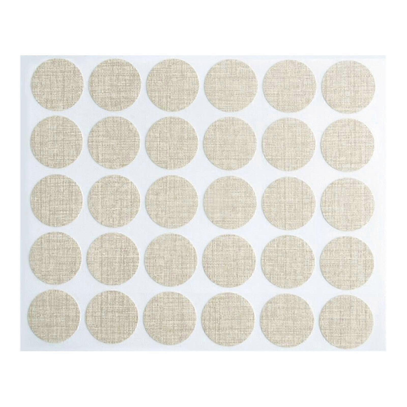 Thirty Pieces Waterproof Screw Hole Cover Stickers Self Adhesive Portable for Concealing Furniture Cabinet Desk Holes Beige Cloth Pattern