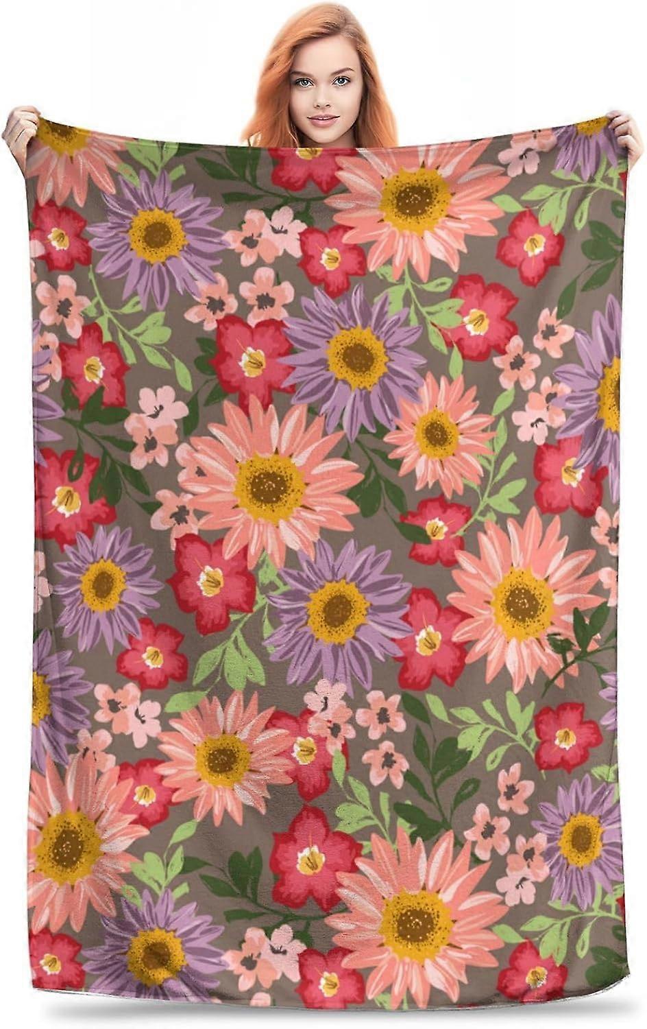 Garden Bloom Daisy Soft Flannel Throw Blanket - Cozy, Warm, Decorative & Lightweight, Perfect for Couch or Bed, Ideal for Travel & Outdoor Use, Fuzzy