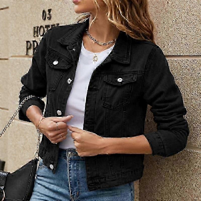 Women's Winter Long-Sleeve Denim Jacket with Turn-Down Collar