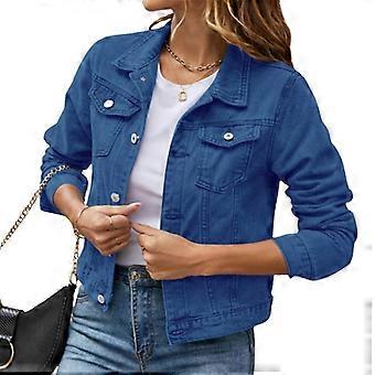 Women's long sleeved short denim jacket with pocket buckle