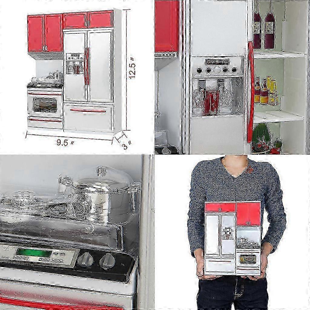 New Red Mini Kitchen Pretend Play Cooking Set Cabinet Stove Girls Toy Gift