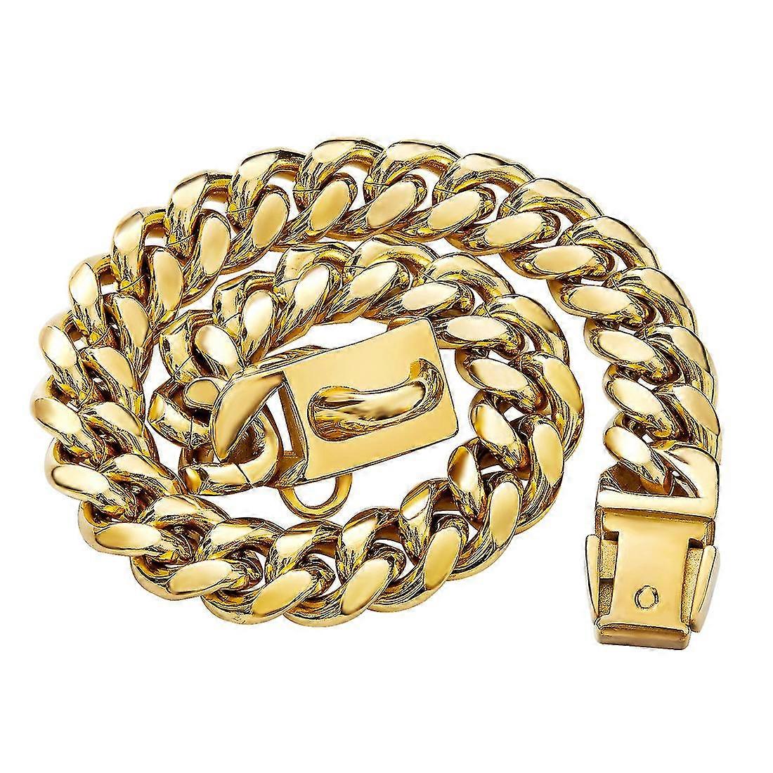 New Pet Dog Collar Stainless Steel Cuban Chain Dog Chain Dog Collar Lock Gold Silver Dog Leash-20inch/51cm-gold-2pcs