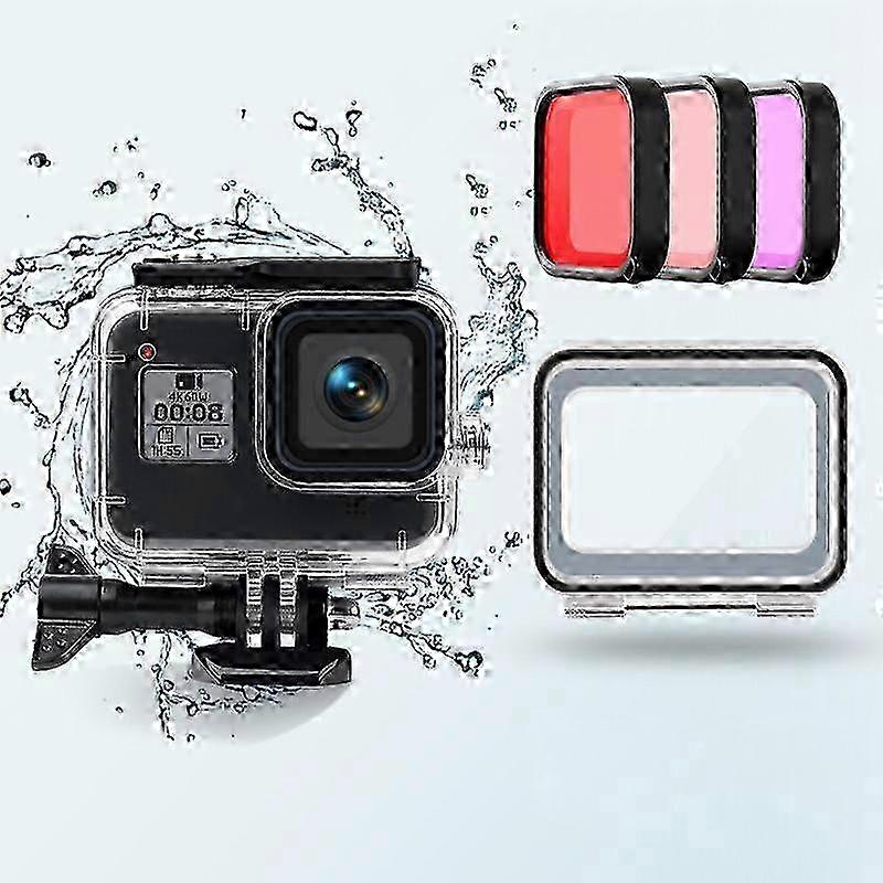 45m Waterproof Case + Touch Back Cover + Purple Red Pink Lens Filter for GoPro HERO8 Black
