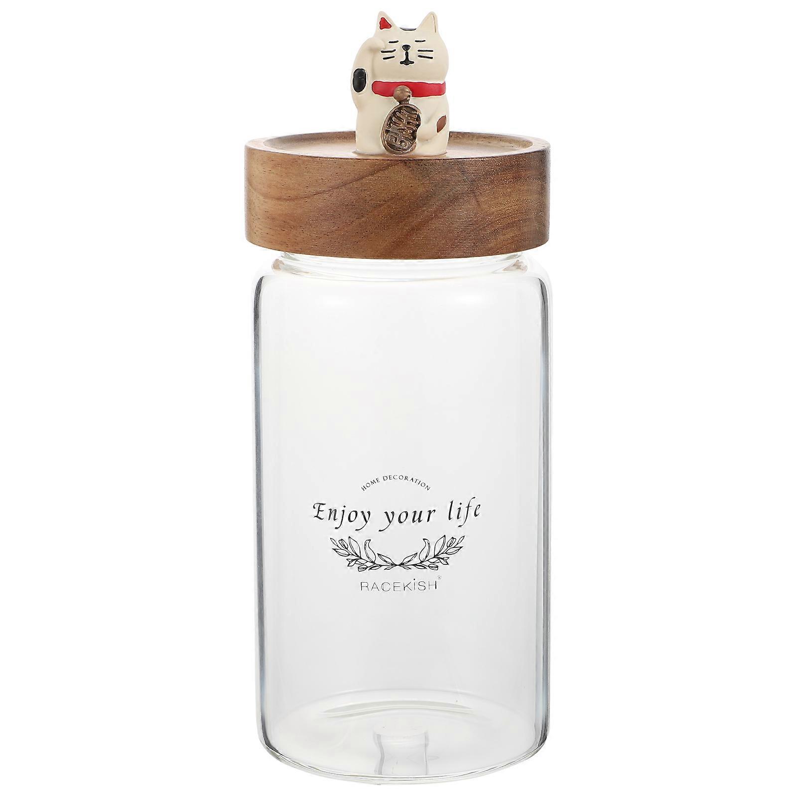 Storage Jar Kitchen Sealing Tea Jar Household Supplies Glass Wood Material Food Storage 1Pc