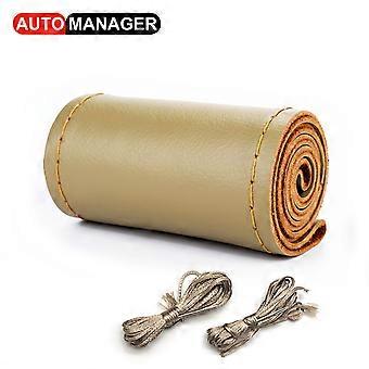 Genuine Leather Braid Steering Wheel Cover Automobile Braiding Covers On The Steering Wheel for Car Interior Accessories 15 inch