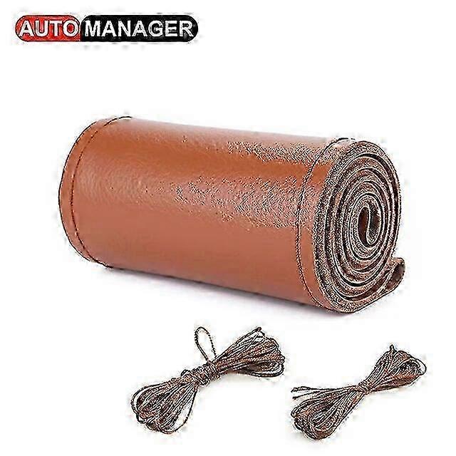 Genuine Leather Braid Steering Wheel Cover Automobile Braiding Covers On The Steering Wheel for Car Interior Accessories 15 inch