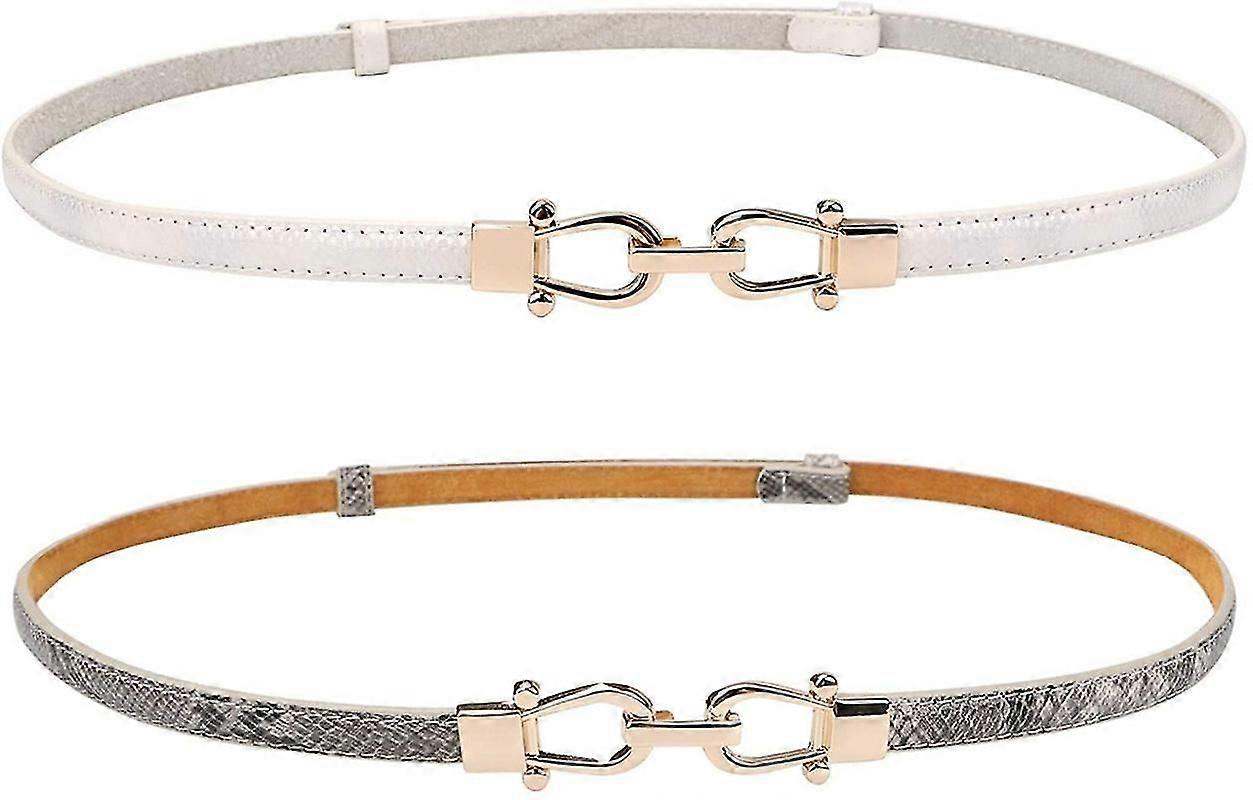 Leather Skinny Women Belt Thin Waist Belts With Golden Buckle 2 Pack