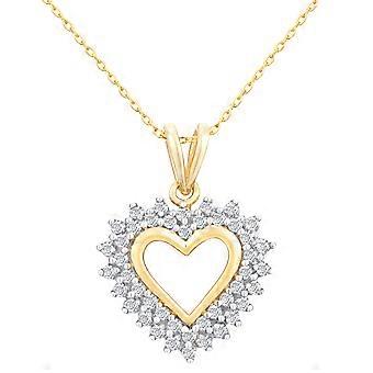 Jewelco London 9ct Yellow Gold Round 1/3ct Diamond Heart Pendant Necklace 18 inch 46cm
