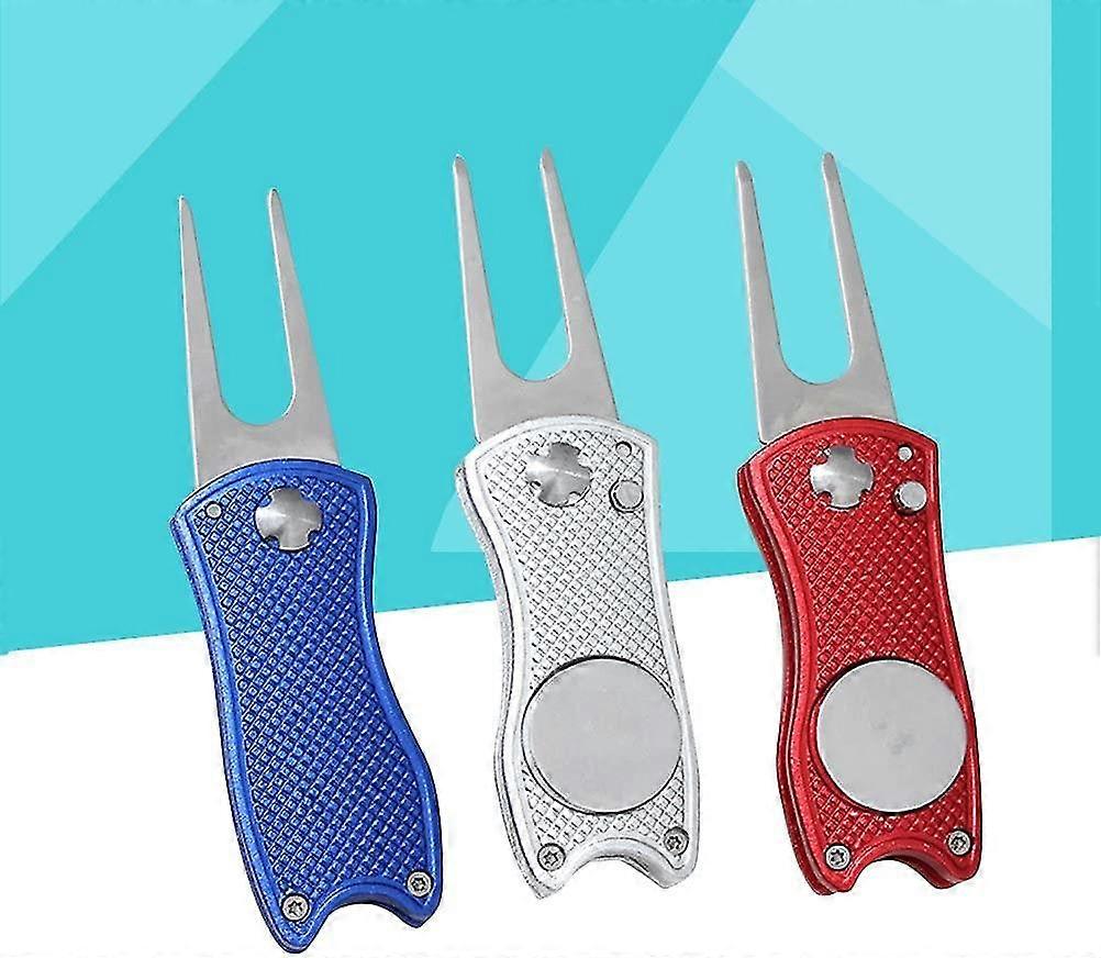 All Metal Stainless Steel Foldable Golf Divot Repair Tool Ball Marker Golf Pitch Fork Putting Green Repair Kit Golfer Training Accessory(2pcs, Blue+si