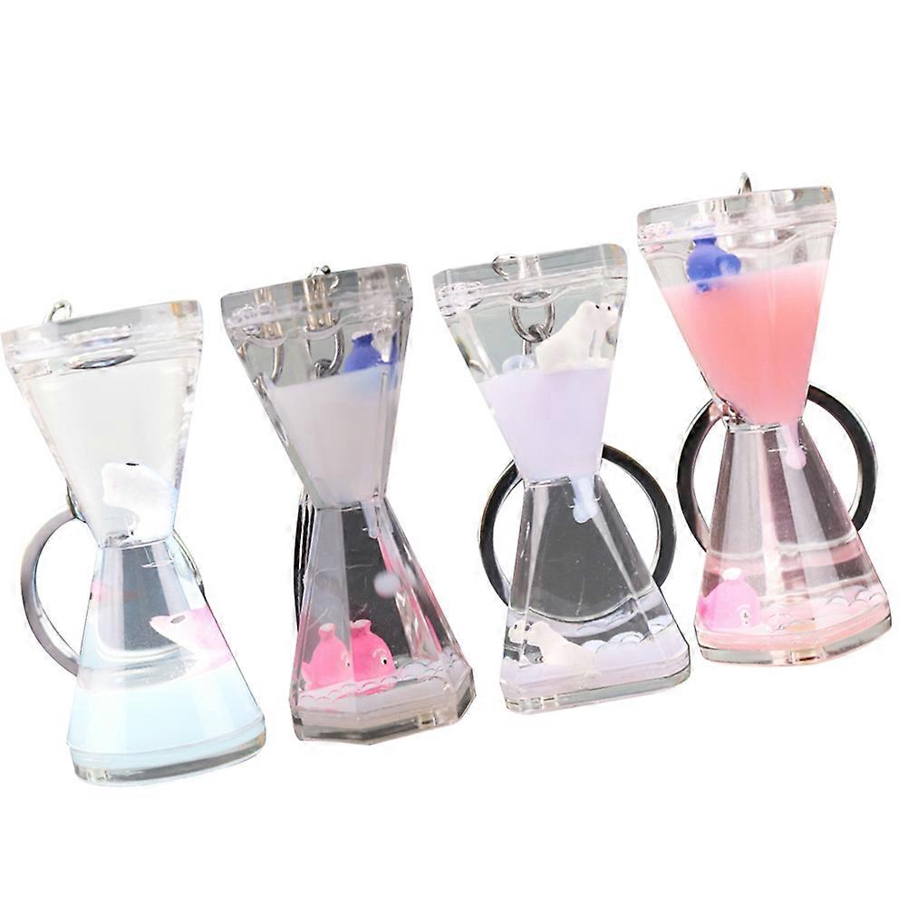Lovely Pendant Keychain Mini Animal Shape Fashion Hourglass Pendant Key Rings Craft Ornaments Assorted Color 6.5*2.5cm Bag Decoration 4Pcs