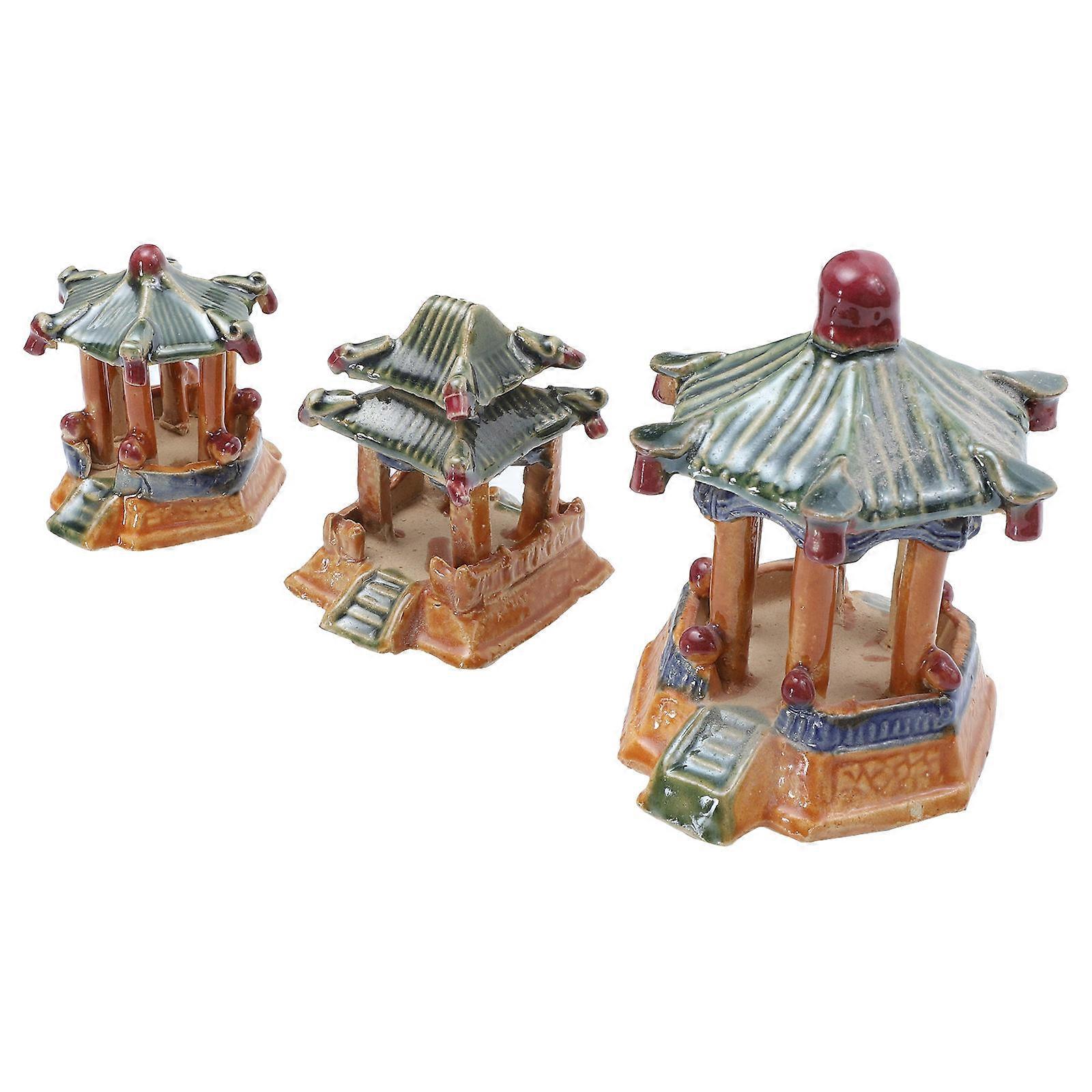 Handmade Ceramic Pavilion Traditional Chinese Style Aquarium Enhancement Underwater Miniature Decoration 3Pcs