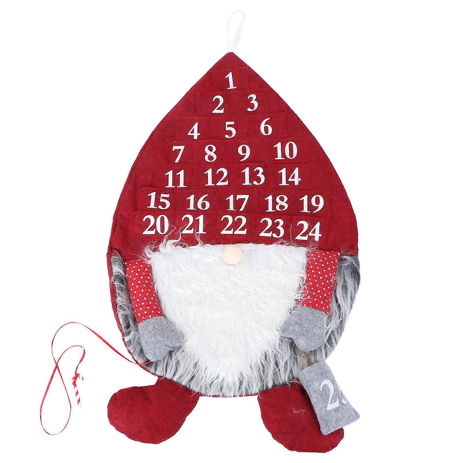 Gnome Christmas Countdown Calendar Hanging Red Hat Santa Decorations 64*39cm Storage 1Set