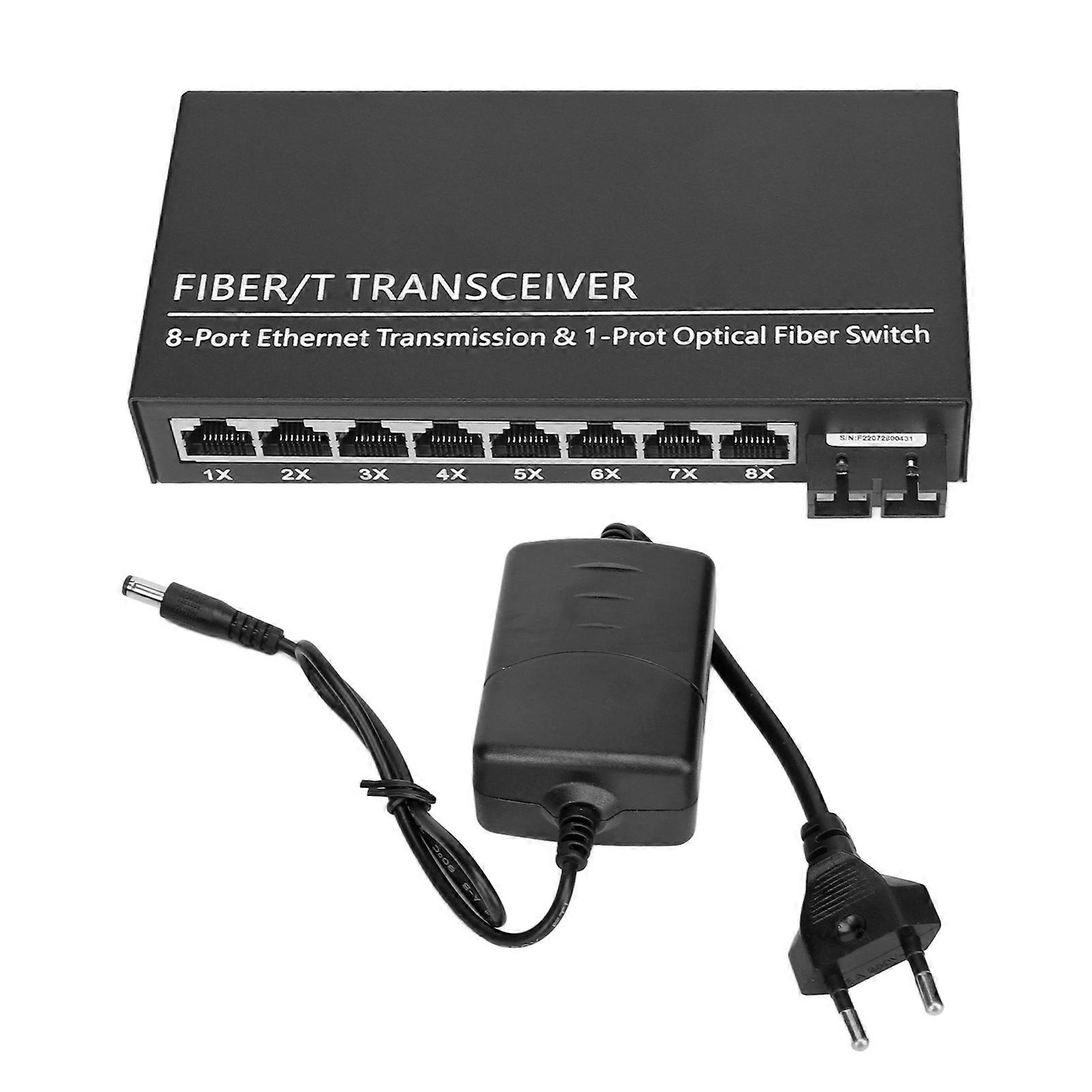 Tx1310nm Transceiver 1 Optical 8 Electrical Ports Up To 25km RJ45 Port Single Mode Fiber Media Converter 100‑240V
