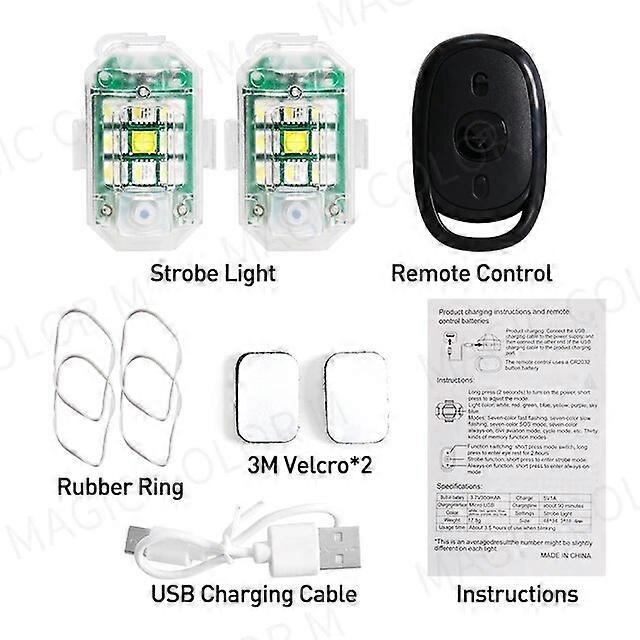 Certification:ce Special Features:7 Colors Super Bright Waterproof Material Type:ABS, LED Item Type:Warning Lights Assembly Color:Clear Voltage:12V Lumens:3400Lm Item Weight:17g Wattage:5w Origin:Mainland China Wireless Remote Control LED Strobe Light for Car Auto Motorcycle Bike Drone Scooter Anti-collision Warning Lamp Flash Indicator Features 1. The seven-color switching remote control has a brighter battery life and more car atmosphere white light/red light/green light/blue light/yellow light/purple light/ice blue 2. Various installation methods, rubber band binding and pasting 3. Use high-quality high-brightness multi-color lamp core, high-brightness lamp beads enhance the safety of driving warning and are not afraid of rear-end collision 4. USB rechargeable battery has a long service life. USB interface, computer, charger and charging bank can be charged Specifications Built-in Battery: 3.7V 350MAH Charging Interface: Micro USB Charging Time: About 90 Minutes Light Color: White, Red, Green, Blue, Yellow, Purple, Sky Blue Product Size: 48x34.3x18.4mm Usage Time: About 3.5 hours when flashing Setting Mode: Fast Strobe Light, Slow Strobe Light Product Charging: 5V 1A Package included 2 x Strobe Light 1 x Remote 1 x Manual 4 x Rubber Rings 2 x 3M Velcro 1 x USB Charging Cable