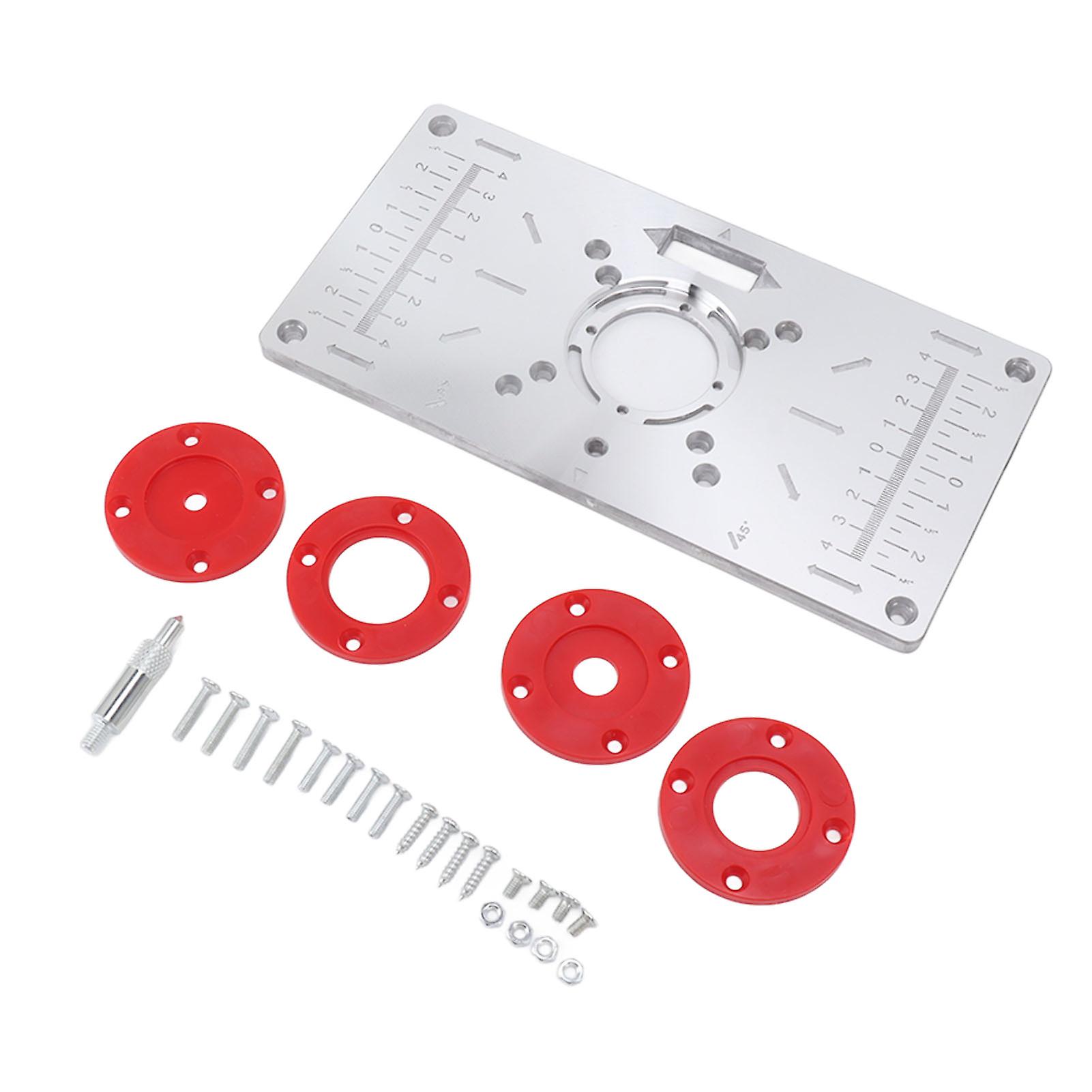 Router Table Insert Plate Woodworking Aluminum Router Plate with 4 Insert Rings for Wood Trimming Milling Slotting