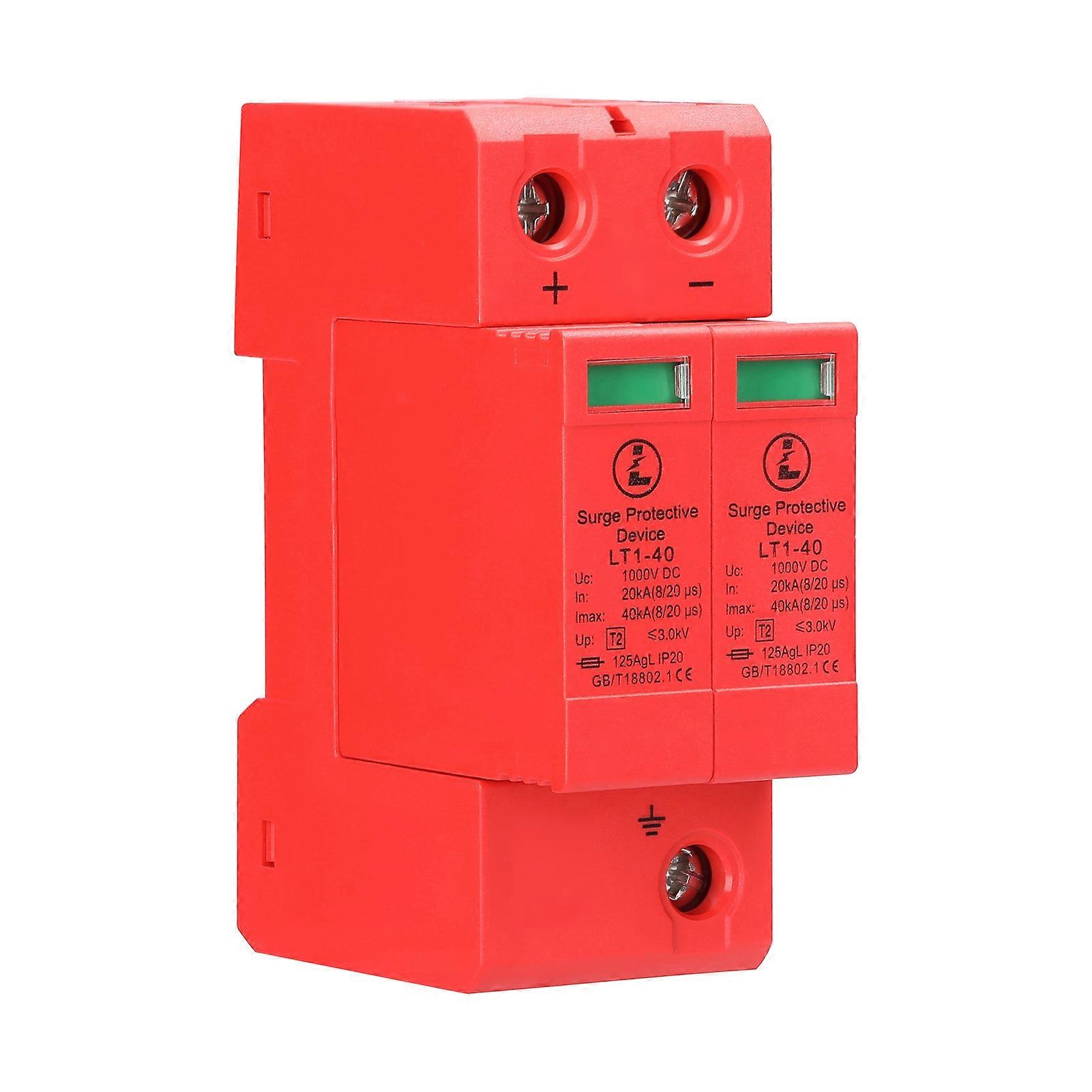 Plug-in Type Solar Photovoltaic Power Surge Protector Surge Protectives Device 2P-40KA-DC1000V Surge Voltage Protections Tool Surge protectives device, protects against thunder surge voltages in solar system (photovoltaic powersupply system). Features: When thunder occurs, it is necessary to respond quickly and unload the voltage to prevents household appliances from being burned. Fire-proof and flameretardant materials, safer and insulation. Plug-in type design, convenient e. Red copper accessories, ultra-thick chips, strong conductivity, not easy to rust. Large-hole threaded terminal is more compact, long service time. Specifications: Color: red Voltage: DC1000V Discharge current(8/20μs): 20KA, max. 40KA Item size: 90 * 64 * 36mm / 3.5 * 2.5 * 1.4in Item weight: 184g / 6.5ounce Package size: 92 * 70 * 38mm / 3.6 * 2.8 * 1.5in Package weight: 196g / 6.9ounce Packing List: 1 * Surge Protector 1 * Arc-disconnector
