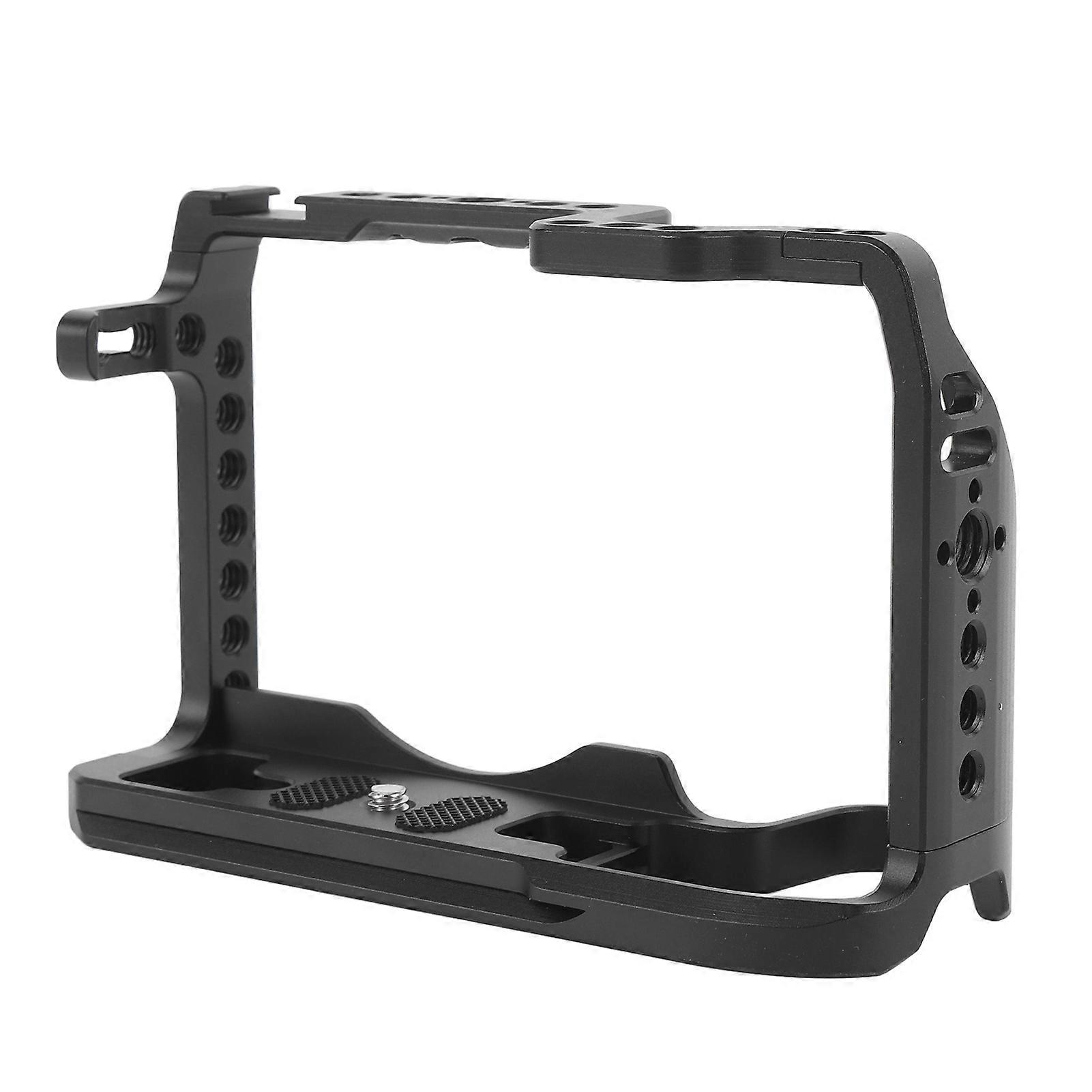 Camera Metal Rabbit Cage Rig Video Photography Expansion Frame for RP Microcamera Item Type: Camera Metal Rabbit Cage Material: Aluminum alloy and silicone Cage Interface: Cold shoe mount, 1/4in screw hole, 3/8in screw hole, 3/8in locating hole Application: For RP camera