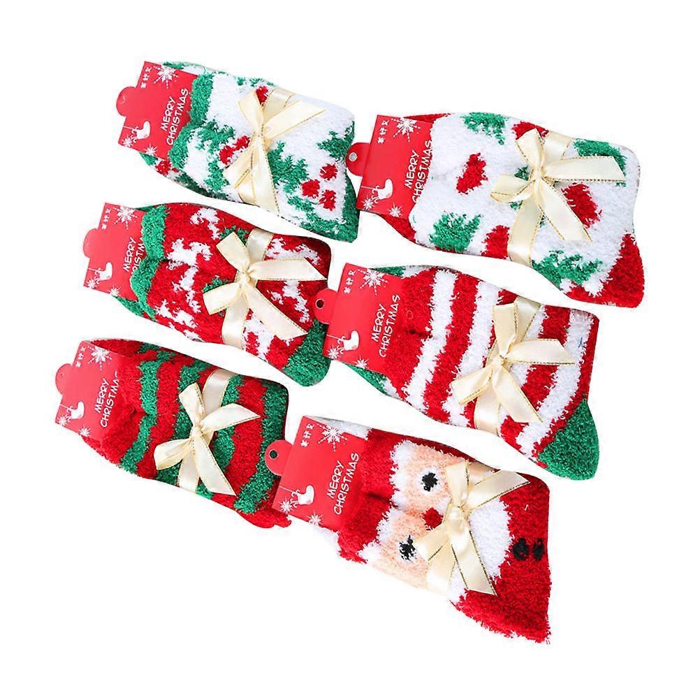 Cute Thick Socks For Women Autumn And Winter Coral Velvet Keep Bow Socks 6 Pcs