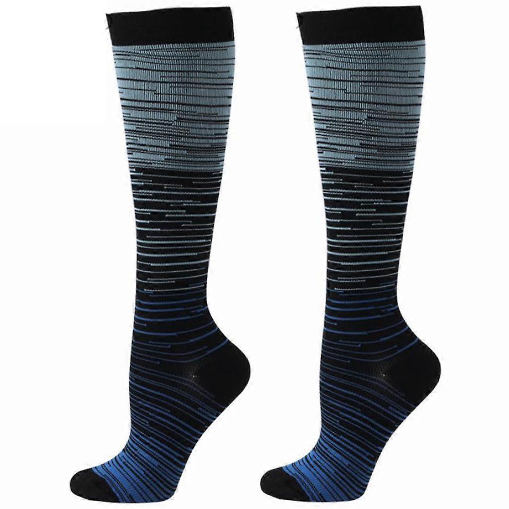 Unisex Compression Stockings Multicolored Gradient Striped Sport Knee High Socks