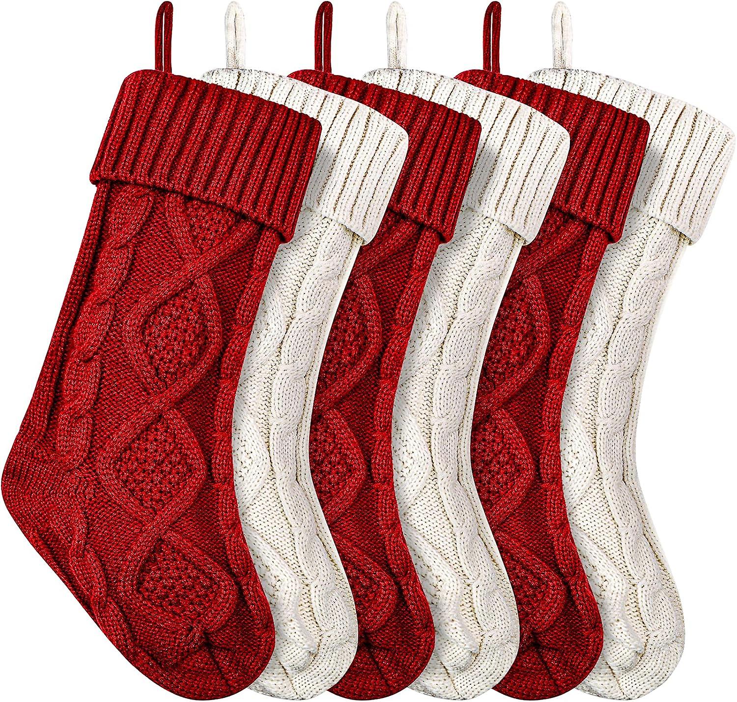 Christmas Stockings Large Knitted Xmas Stockings 18 Inches Fireplace Hanging Stockings for Family Holiday Christmas Decoration (Burgundy,Ivory, 6)