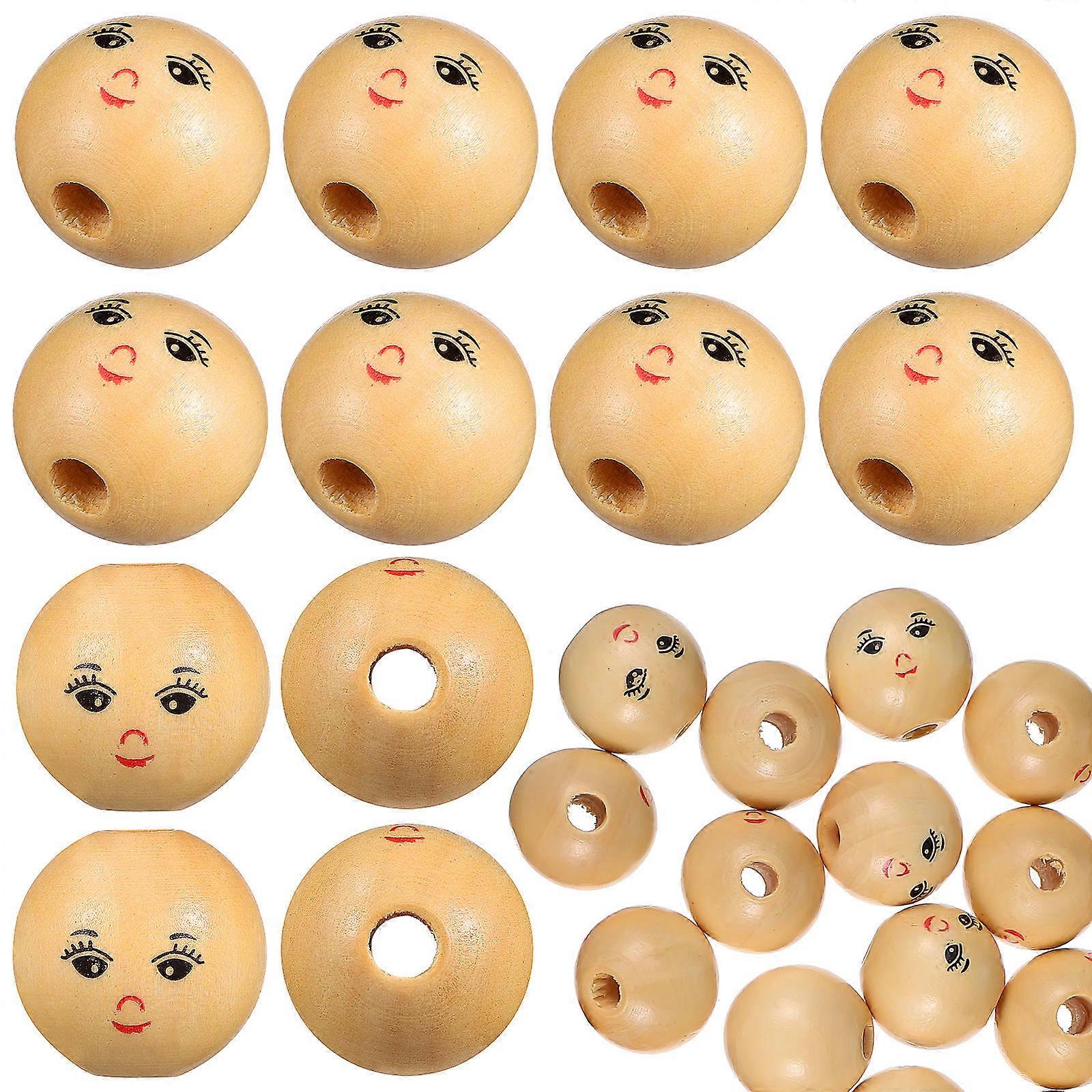 Round Smile Face Wood Beads Durable Material For Home Decor And Hanging Decorations 50Pcs
