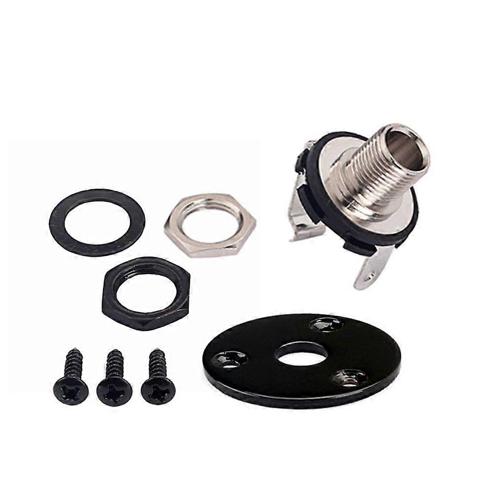 Round 1/4 Inch 6.35mm Guitar Jack Plug Socket Guitar Pickup Output Input Jack Plug with Jack Plate Screws for Electric Guitar Bass (Black)
