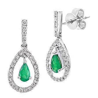 Jewelco London 18ct White Gold Round 20pts Diamond Pear 0.35ct Emerald Teardrop Drop Earrings