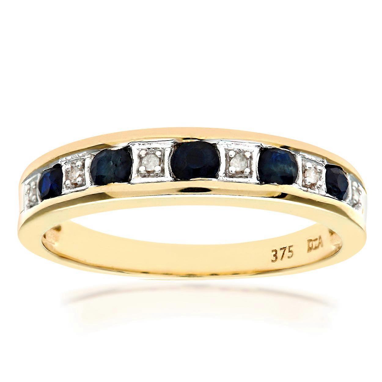 Jewelco London 9ct Yellow Gold Round 2pts Diamond Round 0.38ct Sapphire Alternating Channel Eternity Ring 2mm