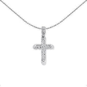 Jewelco London Rhodium Plated Sterling Silver Round Cubic Zirconia 2 Row Pave Cross Pendant Necklace 36mm 18 inch
