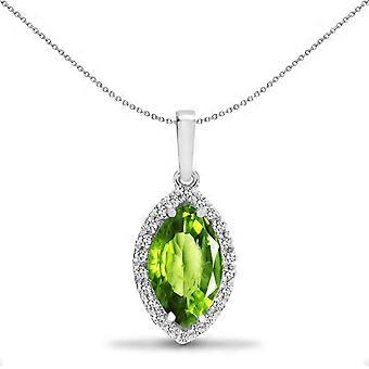 Jewelco London 18ct White Gold 4 Claw G SI 0.1ct Diamond and Marquise Green 1.6ct Peridot Teardrop Halo Cluster Pendant