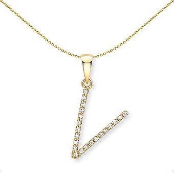 Jewelco London 9ct Yellow Gold Diamond Initial Charm Pendant Letter V 10mm x 15mm