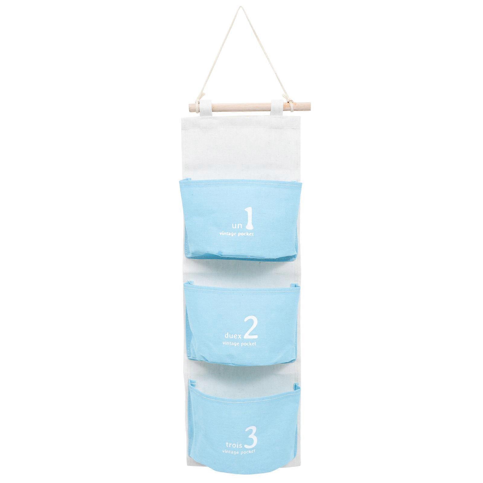 Wall Hanging Pockets Storage Bag Cotton and Linen Space-saving Multi-function Compartments 71x20.2cm 1Pack