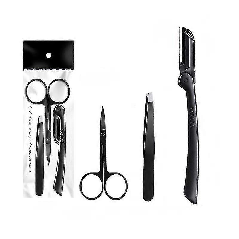 Material: ABS resin + Stainless steel Color: Black Size: as picture shown Package list: 3pcs/1set Eyebrow Shaping Tool (1pc eyebrow clip &1pc eyebrowrazor & 1pc Scissor)"