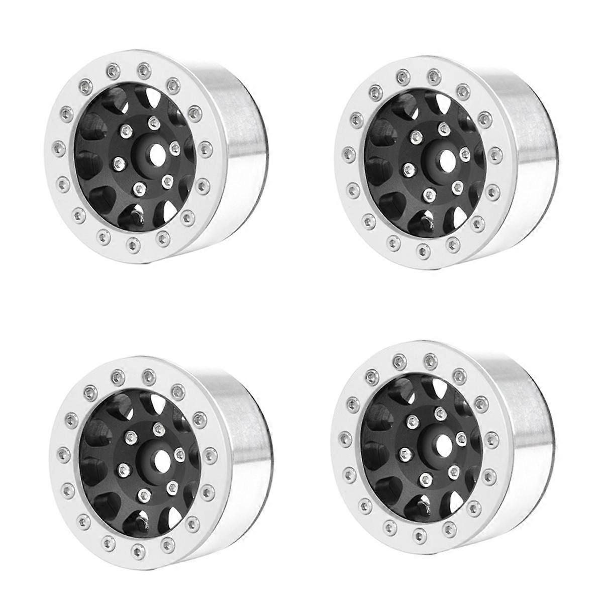 Black Silver Rim 4 PCS 1.55 Inch Metal Wheel Model Car Parts for Axial SCX10 Ghost TRX4 TRX6 D90 1/
