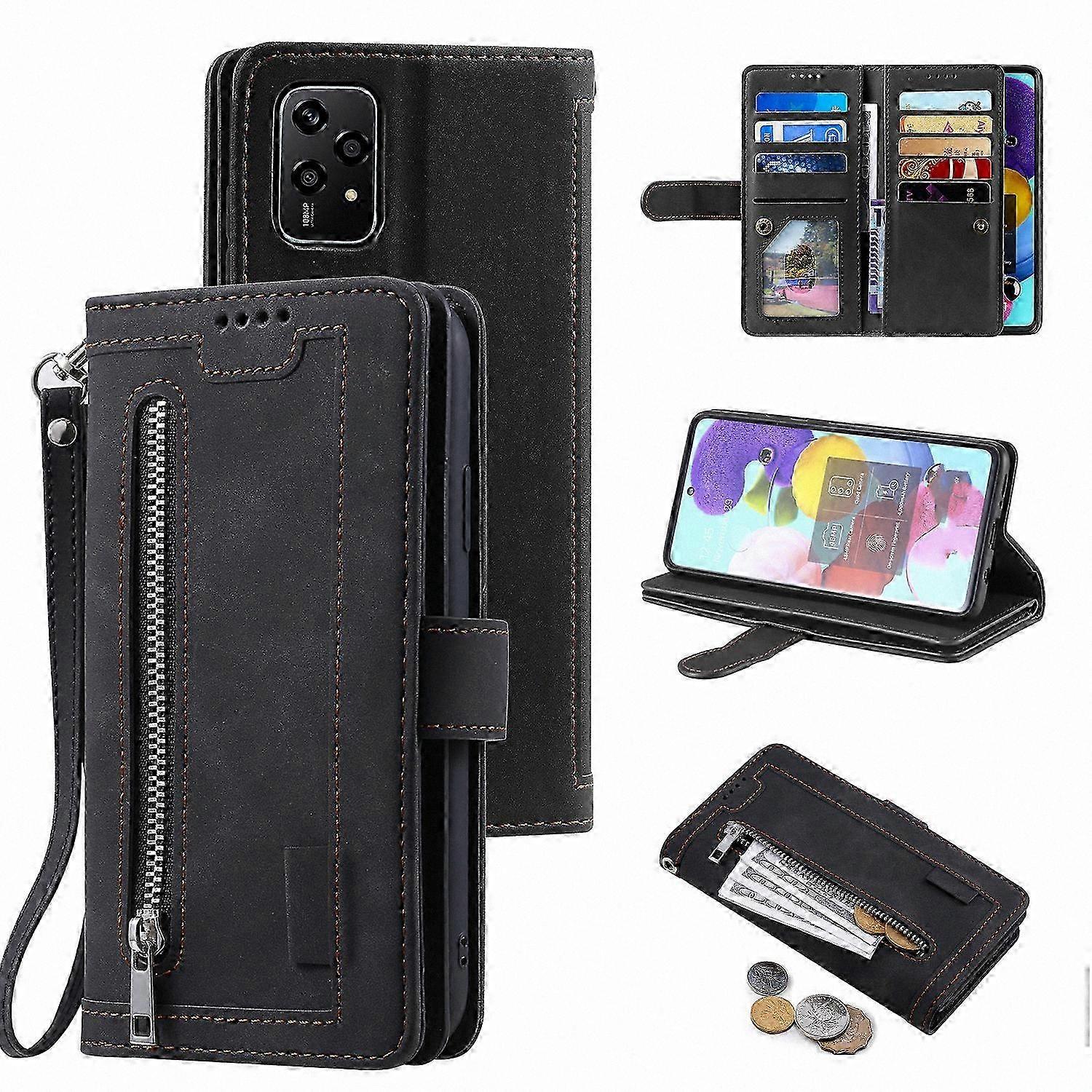 Leather Wallet Phone Case with Zipper Pocket and 9 Card Slots for Lite Devices