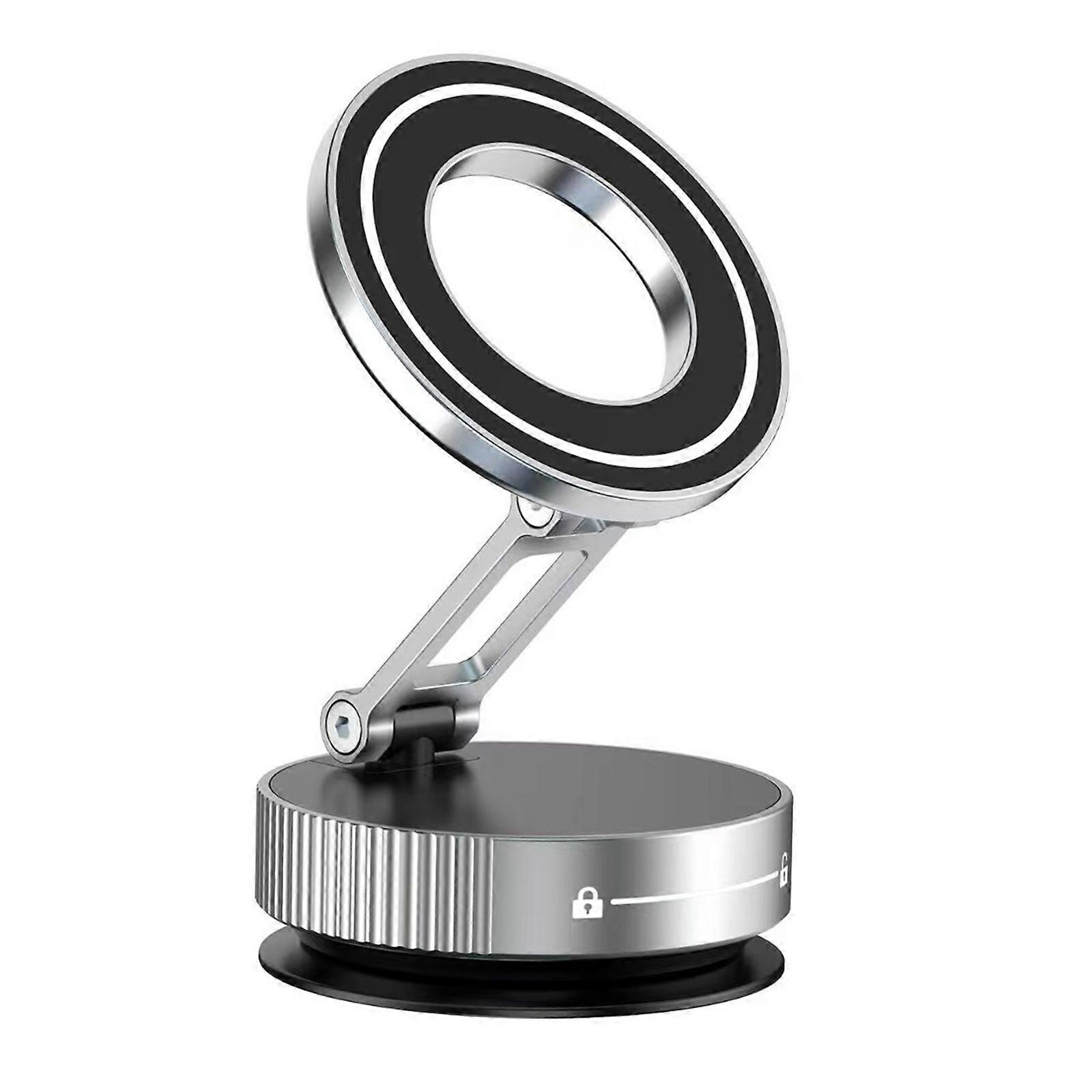 Phone Holder Bracket Stand Rack 360 Degree Rotation Powerful Magnets for Car Mount Strong Grip Vacuum Suction Attachment Silver
