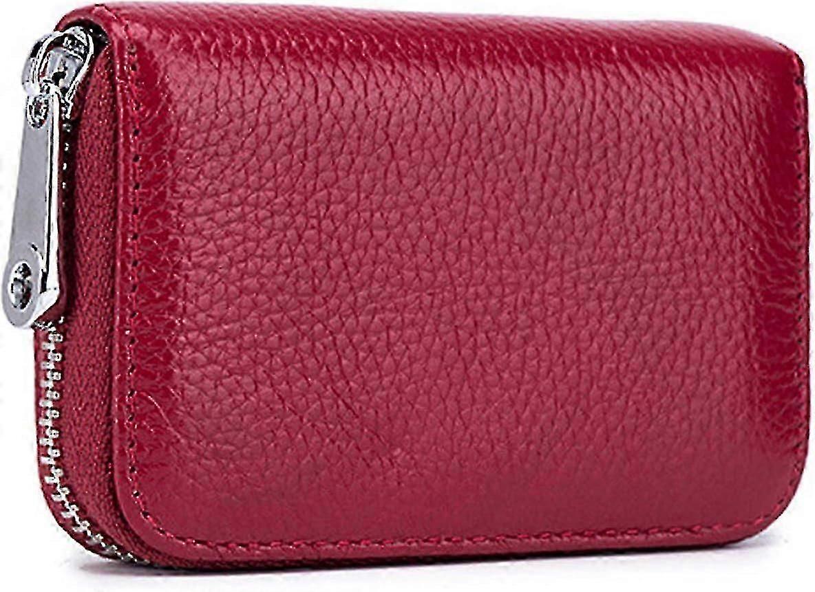 RFID Blocking Genuine Leather Card Holder for Travel with 10 Slots & Zipper Closure, Pink