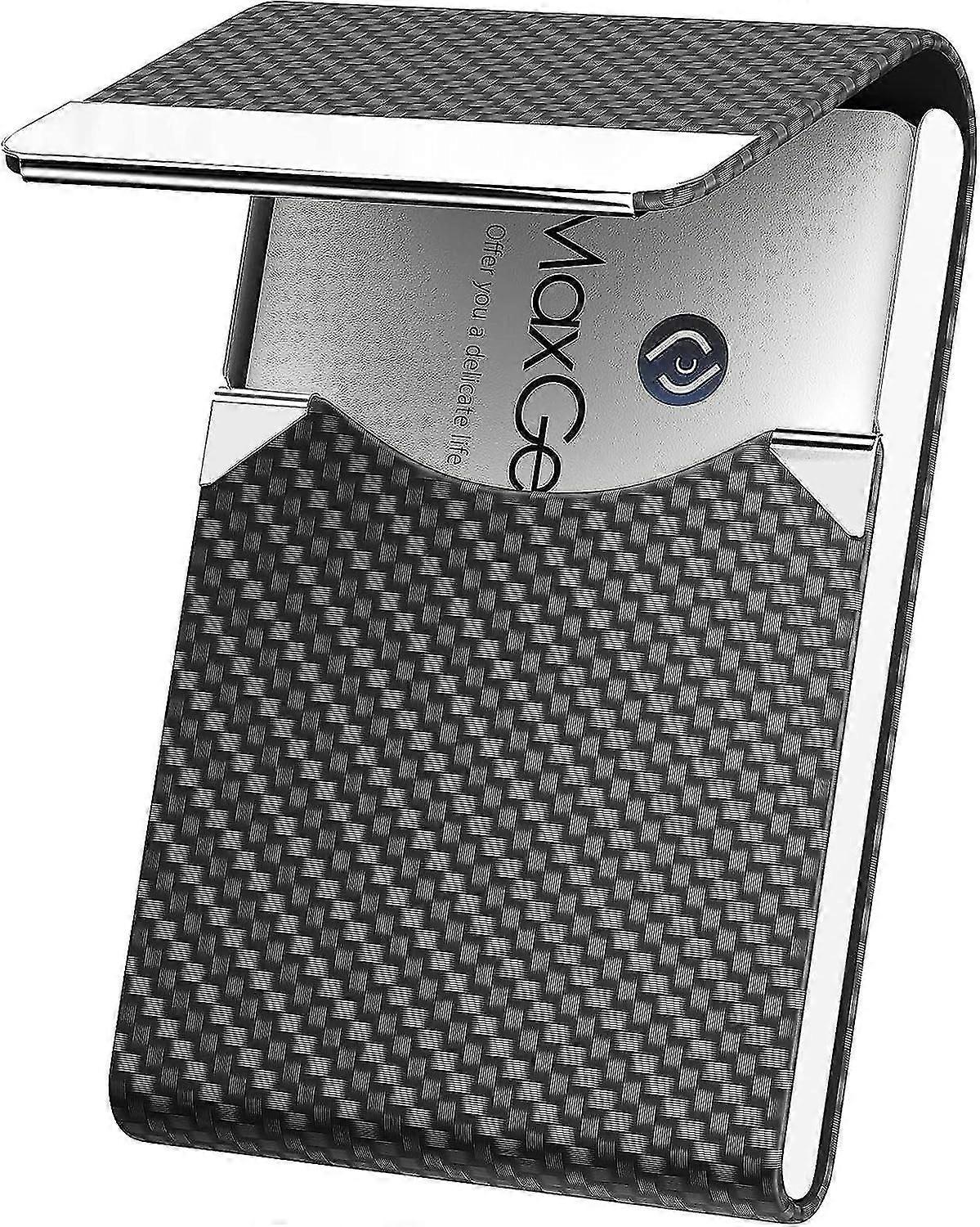 Pu Leather Business Card Holder With Rfid Blocking - Slim Metal Name Card Case