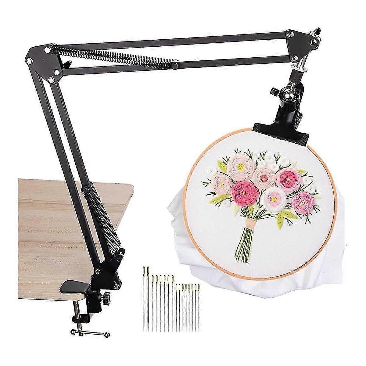 Adjustable Metal Embroidery Stand, 360Rotated Embroidery Hoop Holder, with 16 Pieces Embroidery Needles for Hand Work