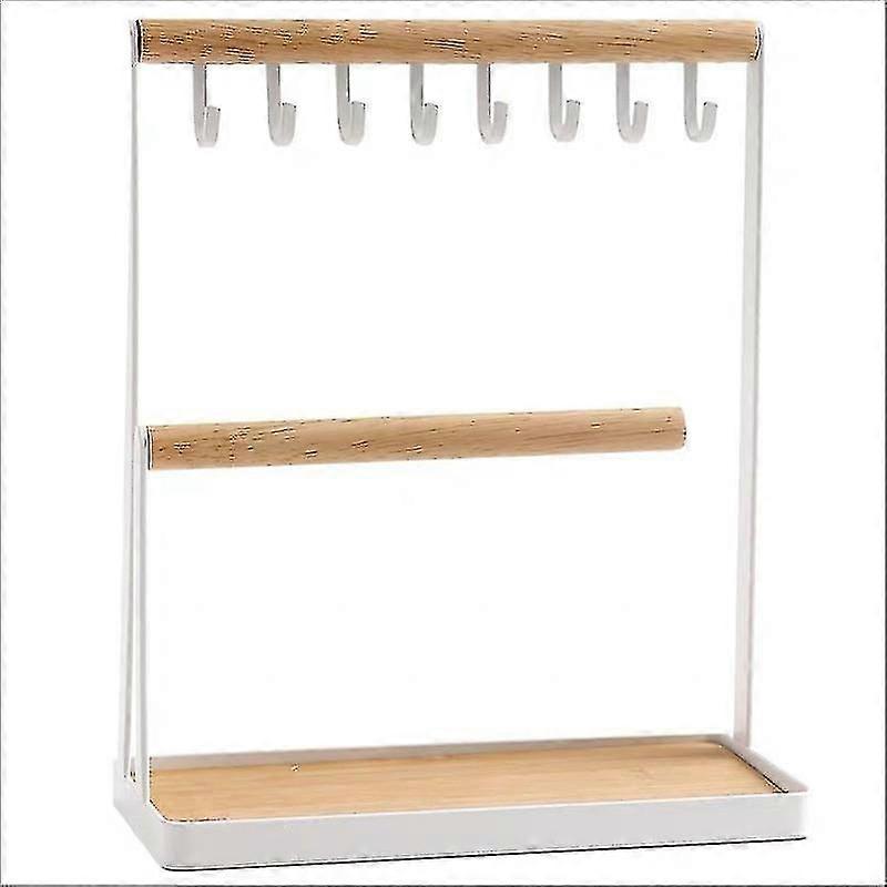 Jewelry Stand Holder, Multi Tier Necklace Hanging Wooden Ring Organizer Earring Tray, 8 Hooks Storage Necklaces, Bracelets