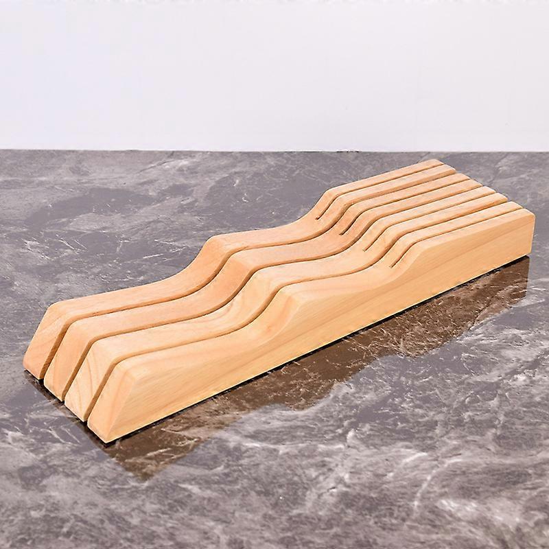 Wooden drawer knife holder - Wooden kitchen work surface or drawer knife holder - Cutlery drawer organizer (1 pcs, wood color)