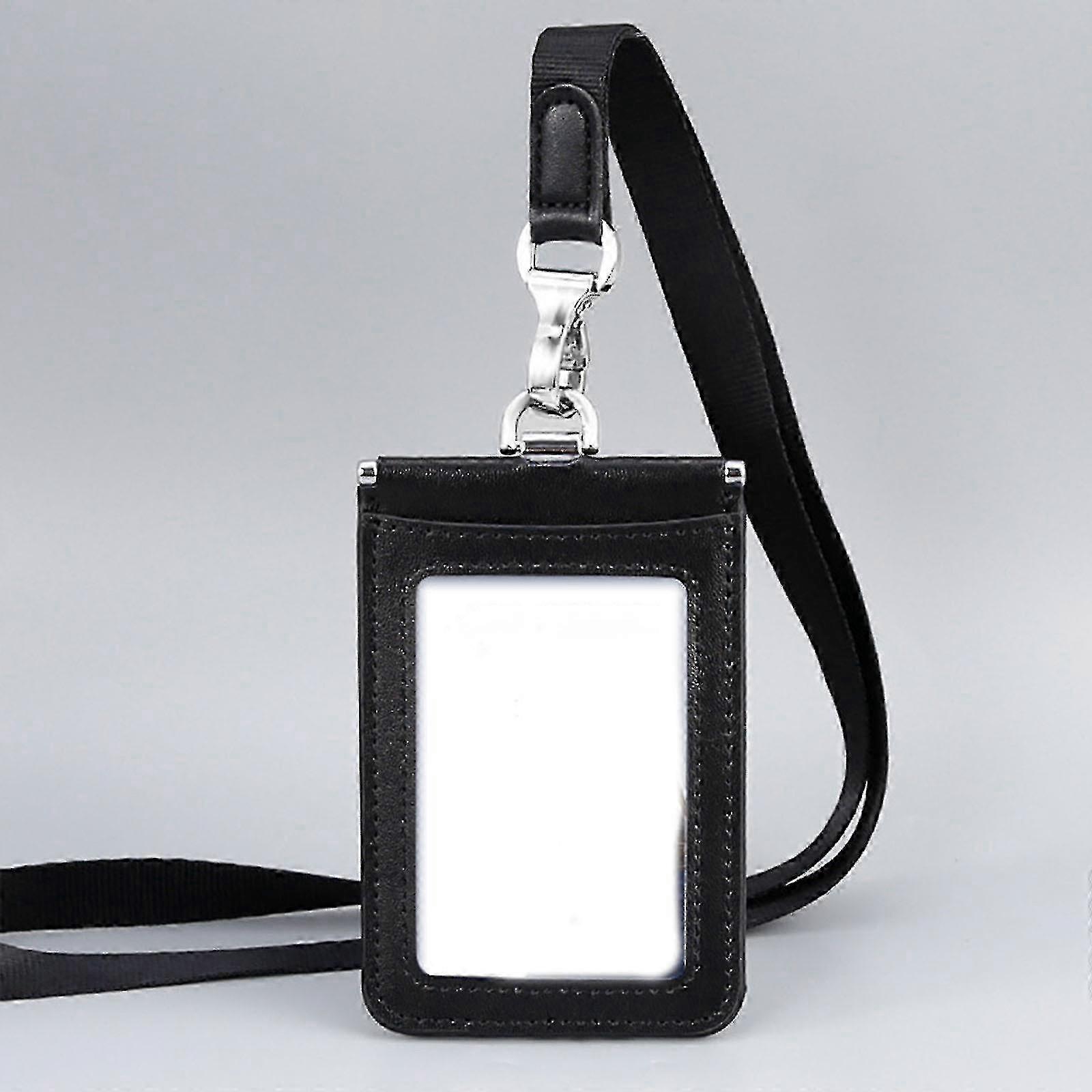 Leather Badge Holder With Clear Id Window Credit Card Slot Detachable Neck Lanyard Business Cards For Women Men f26
