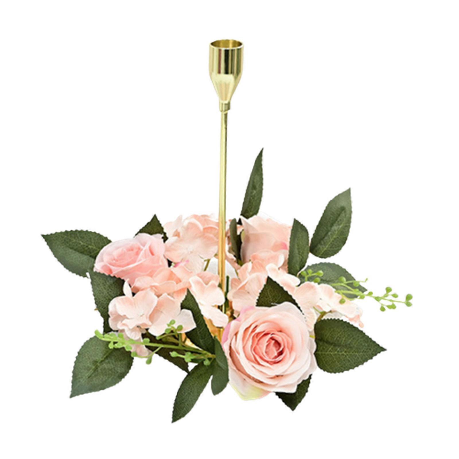 Candle Holder Wreath Floral Centerpieces for Table Ceremony Reception Artificial Rose Flower Garlands Wedding Decoration Pink