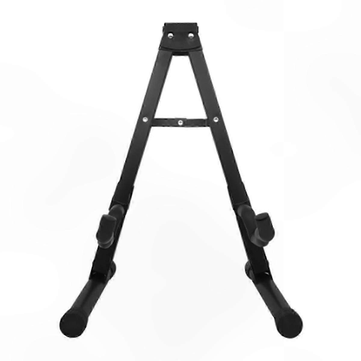 The Foldable A-Frame Guitar Stand is a sturdy and reliable way to keep your acoustic, electric, or bass guitar safe and accessible. Made of thickened metal, this stand is secure and features a foldable design for easy transport and storage. Its A-frame construction provides stability and support for your instrument, while the padded arms protect the finish. Suitable for use with acoustic, electric, and bass guitars, this stand is a must-have for any musician. It is a practical placement accessory for guitar players. Type: Guitar Stand. Material: Metal. Color: Black. Use: Acoustic, Electric, Bass Guitar. Package Contents: 1 x Guitar Stand. Only the above package content is included; other products are not included. Note: Light reflection and different displays may cause the color of the item in the picture to appear slightly different from the real thing. The measurement allowed error is +/- 1-3 cm.